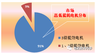 高、低能耗電機(jī)在市場(chǎng)上的分布目前,我國(guó)中小型三相異步電機(jī)仍以3級(jí)以下能效電機(jī)為主,1、2級(jí)電機(jī)總數(shù)僅占9%左右。對(duì)于能效低于2級(jí)的電機(jī),未來(lái)仍有進(jìn)一步節(jié)能改進(jìn)的空間,16億元補(bǔ)貼,無(wú)疑是高效電機(jī)發(fā)展的風(fēng)向標(biāo)。