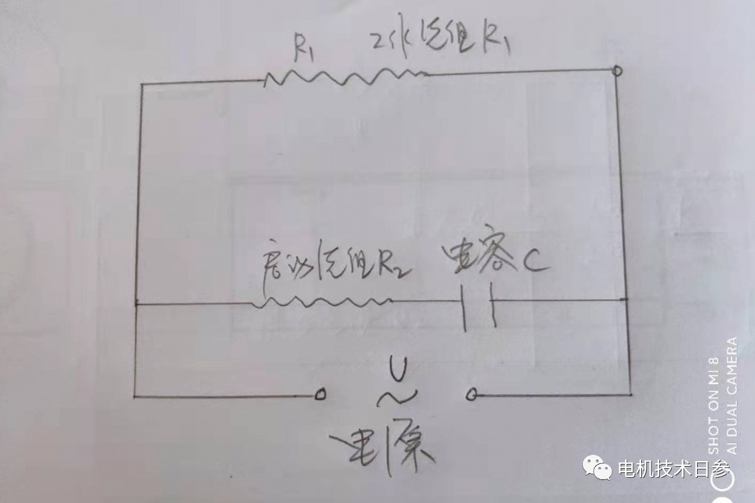 在前一篇文章中,我們與您討論過,決定電機轉向的是電容器和繞組之間的連接。我們以下圖為例,這是一個單相單向旋轉電機的電路圖。無論電源中哪根是火線,都不會改變電容與繞組的連接,也不會改變兩個繞組的相位關系,自然也不會影響電機轉向。
